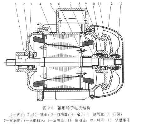 電動(dòng)葫蘆專用錐形電機(jī)集驅(qū)動(dòng)和制動(dòng)為一體,是一種帶制動(dòng)裝置的電動(dòng)機(jī)。具有結(jié)構(gòu)緊湊、安全可靠、調(diào)整維修方便的特點(diǎn)。