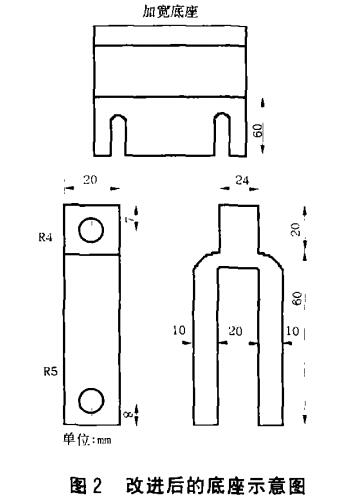 在維修工作中,常發(fā)現(xiàn)三相E型剎車電磁鐵變形,原因是電磁鐵動(dòng)鐵芯經(jīng)常受到?jīng)_擊, 使動(dòng)鐵芯與靜鐵芯接觸面被撞大,造成動(dòng)鐵芯的活動(dòng)導(dǎo)軌面受到磨損。一旦卡角動(dòng)鐵芯與靜鐵芯吻合面不能很好地接觸,電磁鐵內(nèi)部將形成較大磁阻,引起線圈產(chǎn)生足以使線圈發(fā)熱燒毀的電流,致使電磁鐵線圈燒毀。當(dāng)3個(gè)線圈中任意1個(gè)燒毀,電磁鐵吸引力平衡被破壞,另外2個(gè)也就很快跟著燒毀,只好將3個(gè)線圈同時(shí)換掉。這種電磁鐵在 設(shè)計(jì)時(shí)因考慮到簡(jiǎn)潔,動(dòng)鐵芯與制動(dòng)拉桿之間只有一根連桿,極易造成動(dòng)鐵芯的不平衡使鐵芯被卡住,致使制動(dòng)電磁鐵線圈發(fā)熱燒毀。在易燃易爆場(chǎng)所更換線圈時(shí),必須裝上防爆裝置才能試車,這時(shí)無法觀察到鐵芯的動(dòng)作情況,常常造成返工。為了克服電磁鐵線圈經(jīng)常燒毀的問題,經(jīng)過仔細(xì)觀察發(fā)現(xiàn),如果將制動(dòng)剎車調(diào)節(jié)到佳狀態(tài)時(shí),制動(dòng)拉桿的力約在68.6—78.4N之間,完全可以用MQI-513型、吸引力為78.4N、行程為25em的牽引電磁鐵來代替原有的三相式E型電磁鐵。按圖1先將原來固定三相電磁鐵的底座加寬6ocm,然后按電磁鐵底板的尺寸鉆孔,把電磁鐵倒裝上去。為防止電磁鐵的活動(dòng)鐵芯超行程滑脫出來在牽引電磁鐵活動(dòng)鐵芯與制動(dòng)器連桿之間,按圖2的尺寸重做一個(gè)。固定好電磁鐵后就可以把連桿與動(dòng)鐵芯用鋼梢固牢。
