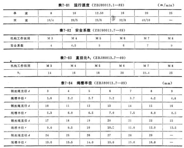 小于表7-83的數(shù)值。卷筒繩槽半徑r的最小值(r=0.525應(yīng)符合表7-84的規(guī)定。