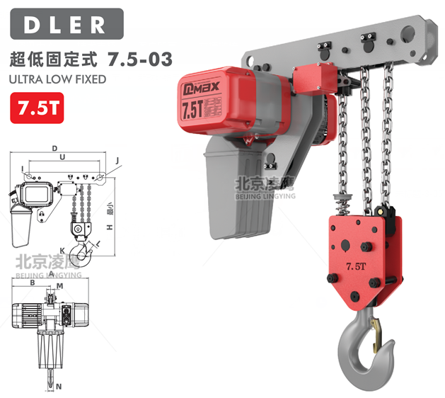 7.5噸DLER環(huán)鏈電動(dòng)葫蘆超低固定式限位開關(guān):重物吊上吊下都有極限開關(guān)裝置,使電機(jī)自動(dòng)停止,以防止鏈條超出,確保安全。